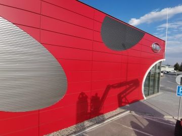 Popis zakázky: Podíleli jsme se na dalším showroomu pro Kia Motors Czech. Jedná se o olomoucký Auto Hlaváček, na který jsme zajišťovali exteriérový design RED CUBE dle zadání KIA Motors. Zajišťovali jsme montáž zateplení a difuzní vrstvy pro systém provětrávaného obkladu. Montáž nosné podkonstrukce, výroba a montáž kazetového systému z kompozitního materiálu Al Bond, výroba a montáž svítícího bílého lemu dle designu Kia Motors a výroba a montáž vstupního portálu.